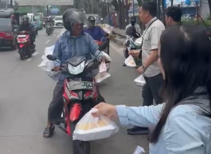 Dalam kegiatan tersebut, jajaran direksi dan karyawan membagikan paket makanan dan minuman kepada masyarakat serta pengemudi ojek online (ojol) yang melintas.